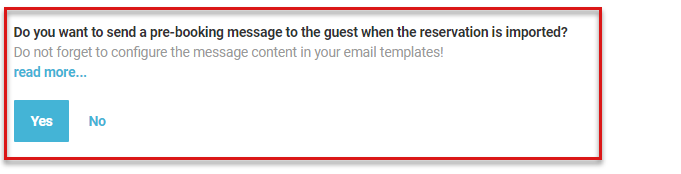 - In the option [Do you want to send a pre-reservation message to the guest when the reservation is imported?], mark [Yes];