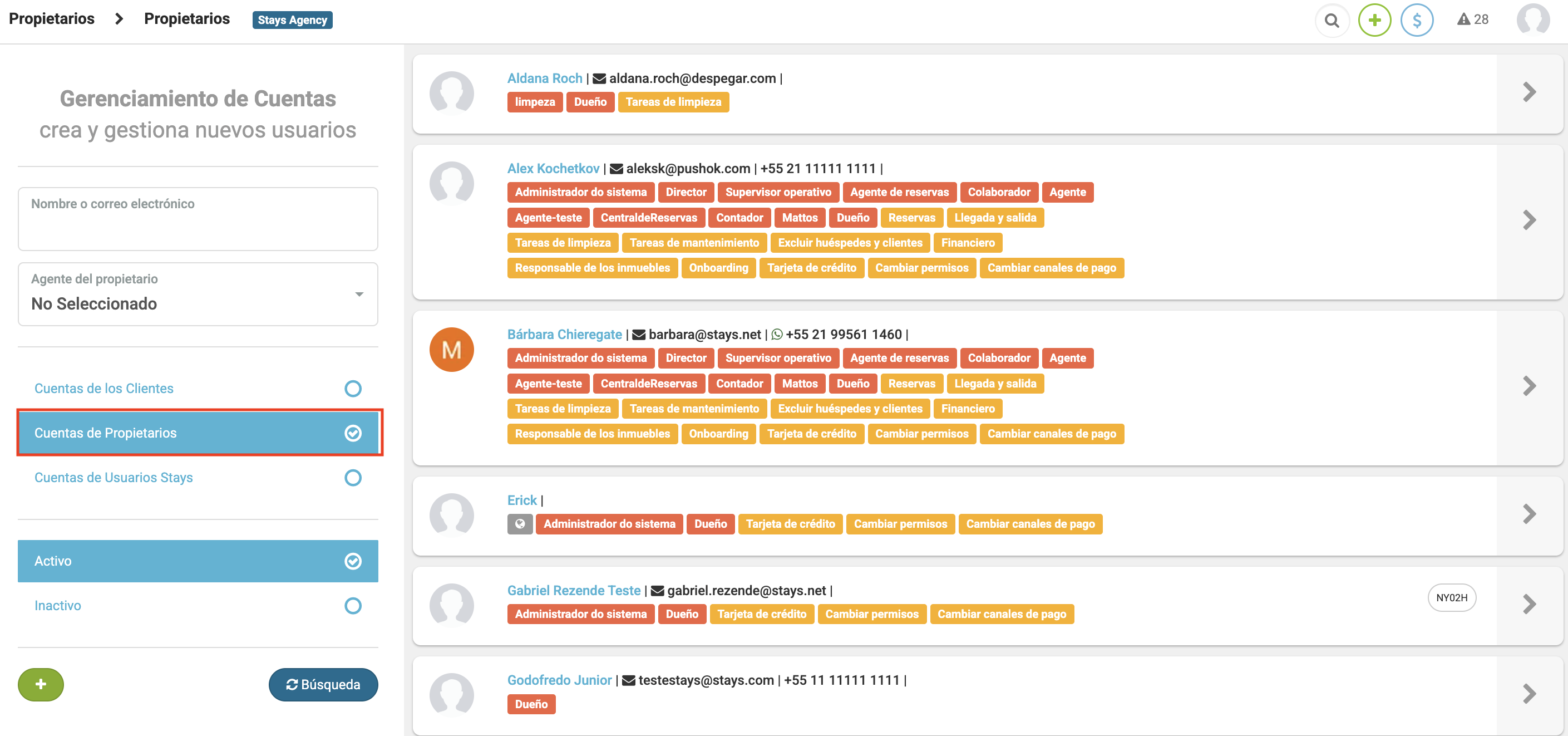 Accede a [Usuarios y Huéspedes > Propietarios];