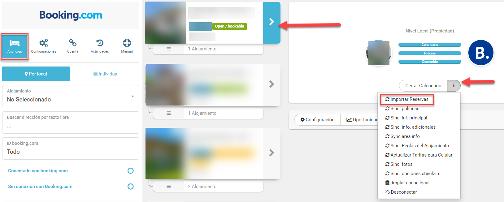 - Accede al menú [Panel de control de Channel Manager > Booking.com];