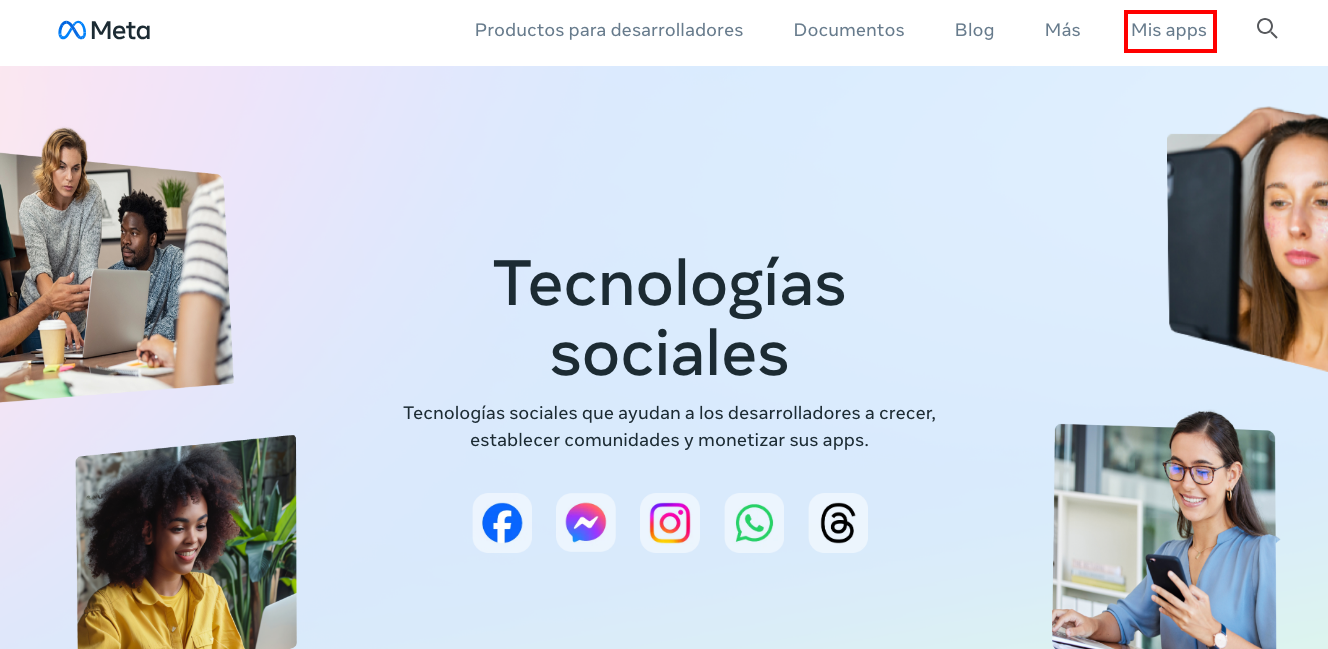 Inicia sesión en https://developers.facebook.com y haz clic en [Mis apps].