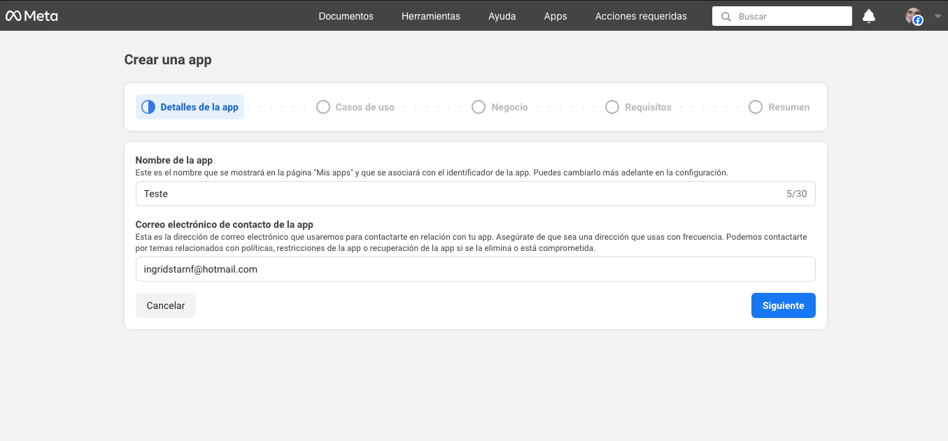 Completa los detalles de la app y haz clic en [Siguiente].