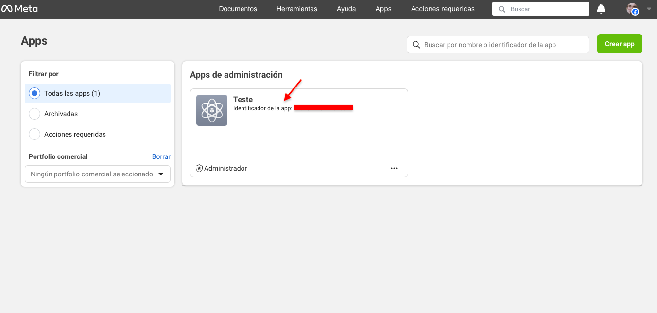 Accede nuevamente a [Apps] en el menú superior y copia el número de [Identificador de la app].